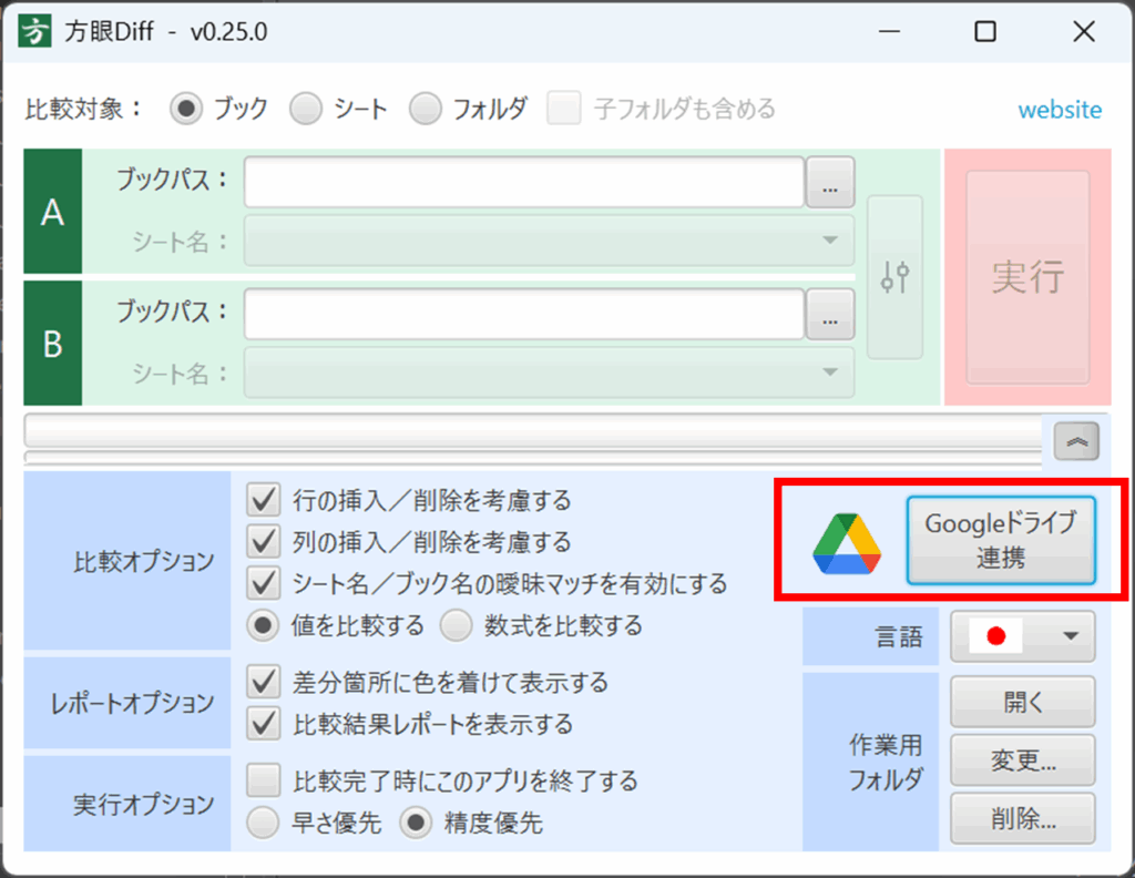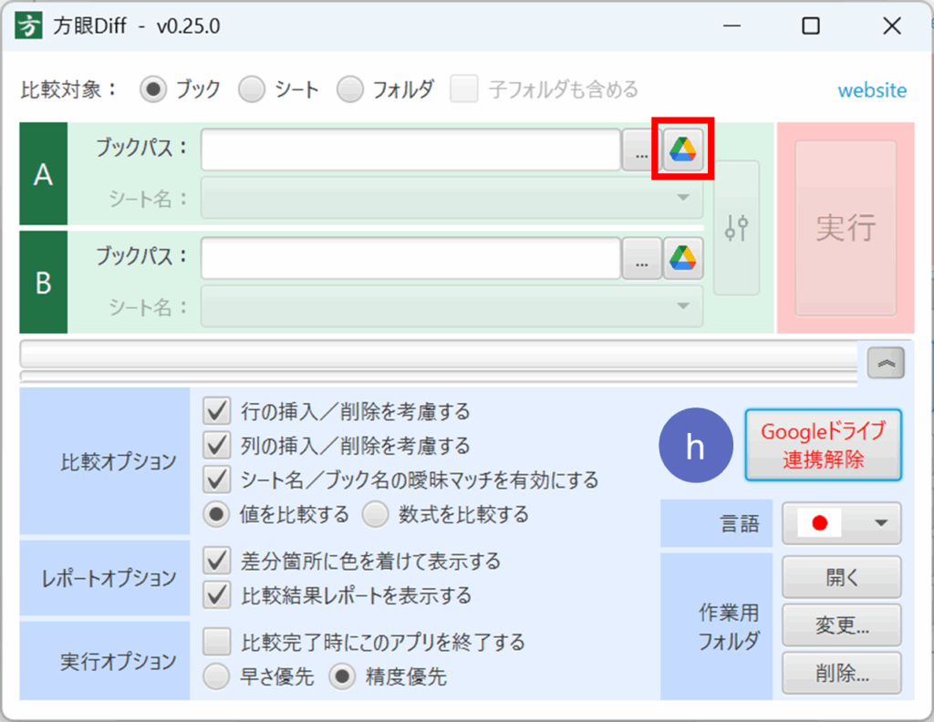 方眼Diffでは v0.26.0 から、PC上のファイルに加えて、Googleドライブ上のファイルも比較できるようになりました。