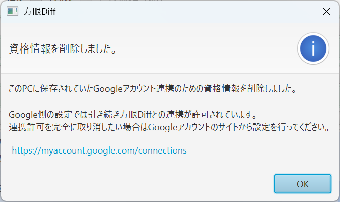 2. Google連携ボタンが初期表示状態に戻れば、方眼Diff側の解除は完了です。