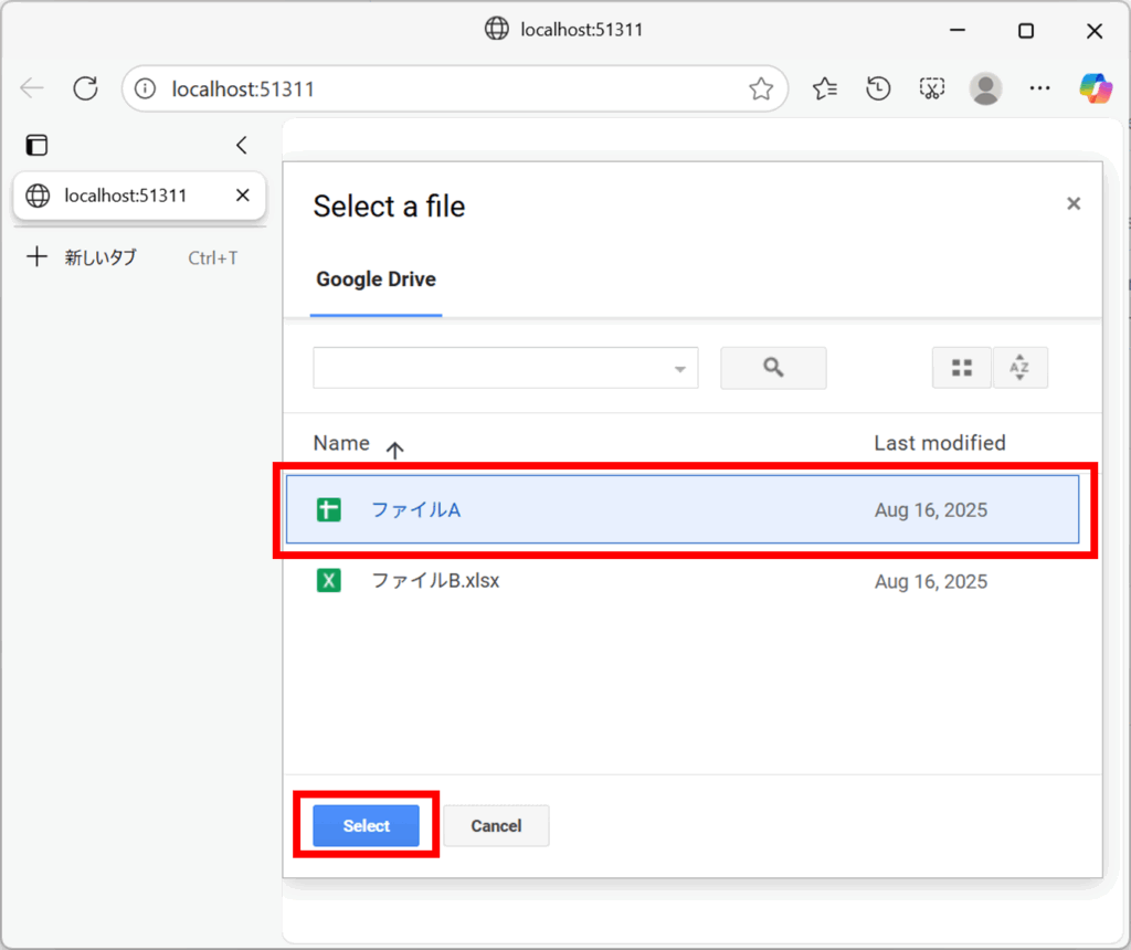 5. 以上の操作により、Googleドライブ上のファイルが選択されました。