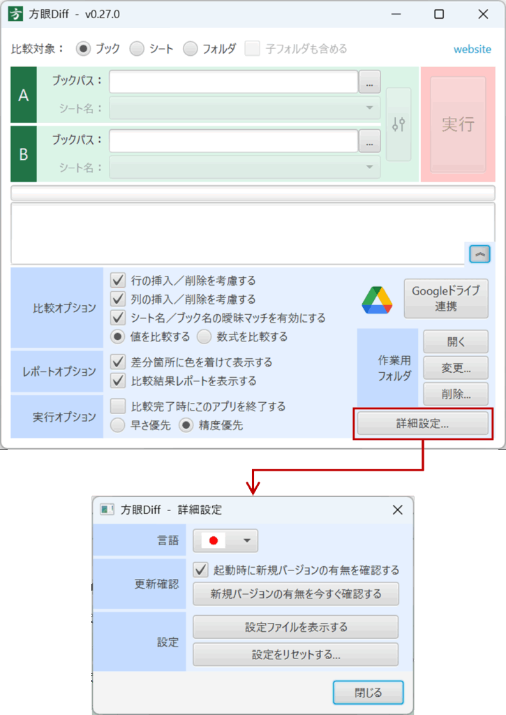 オプション設定を2画面化し、頻繁に変更する必要のない項目を詳細設定ダイアログに配置しました。