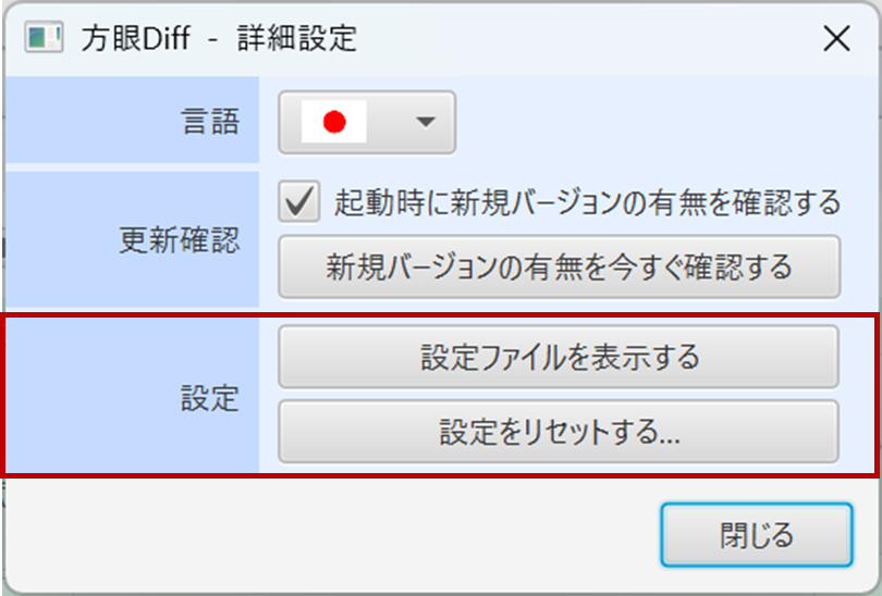 設定ファイルを表示する機能、および、設定をリセットする機能を追加しました。